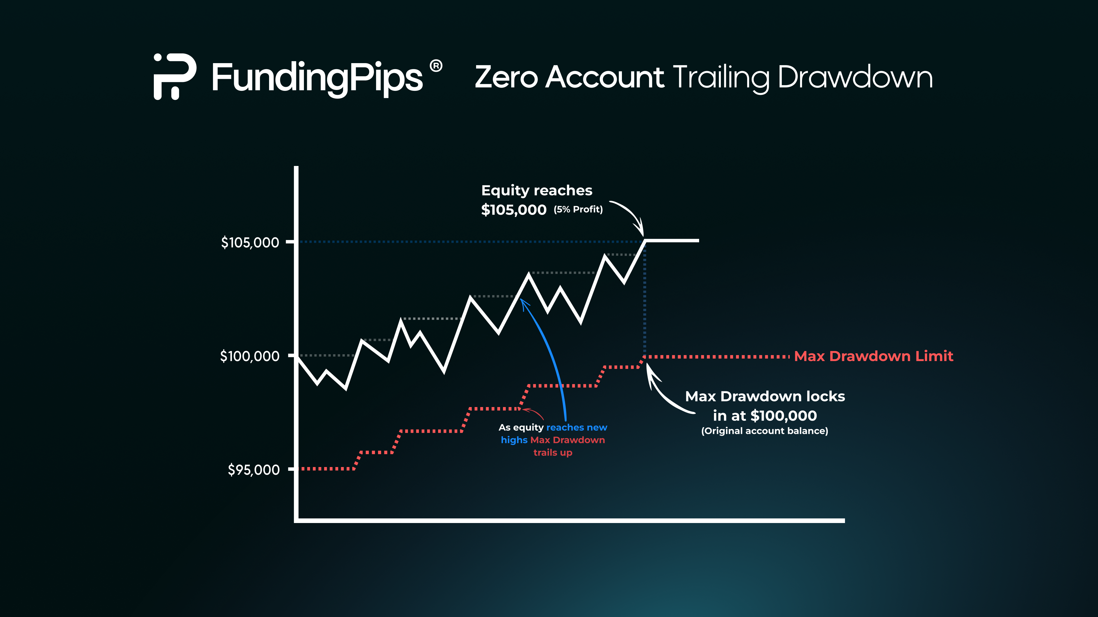 The maximum trailing drawdown is equity based, and becomes locked at the initial account size once 5% profit is reached.